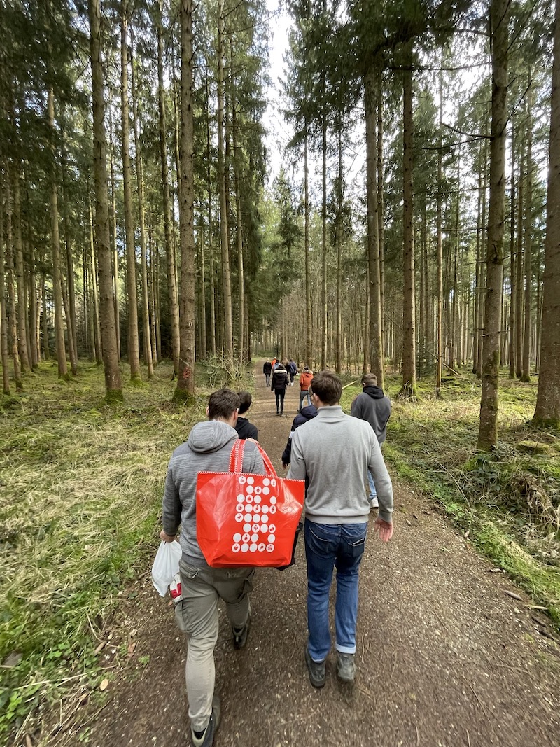 Foto oben (von links): Forstbetriebsleiter Dr. Heinz Utschig, Vorstandsmitglied Andreas Bonholzer zusammen mit den Sparkassen-Azubis und der Leiterin Personal Corinna Helmdach sowie den Forstarbeitern.