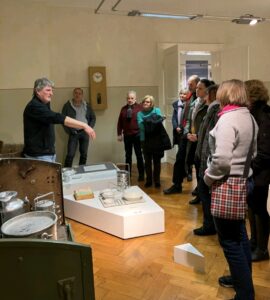 Vom Beginn 1883 als Kreis-Irrenanstalt bis zu den heutigen Tagen des Inn-Salzach-Klinikums wurde fundiert und anschaulich berichtet. Auch die schwierigsten Jahre des Nationalsozialismus mit der T4-Lösung wurden nicht ausgespart. Wurde im ersten Teil eine Präsentation vorgetragen, konnten sich die Besucher im zweiten Teil anschaulich durch Originalexponate informieren. Gerne beantwortete der Museumsdirektor Wolfgang Schmid alle Fragen der Blockmitglieder. Am Ende dankte Stadtrat Armin Sinzinger für die außerordentlich spannende Führung und kündigte mit dieser Veranstaltung eine Veranstaltungsreihe über das „Unbekannte Wasserburg“ an.