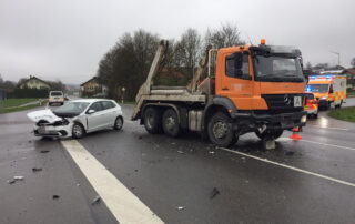 Pkw prallt gegen Lkw - Zwei Verletzte - Notarzt und Rettungsdienst im Einsatz
