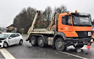 Polizeibericht zum B12-Unfall: Junge Frau aus Österreich prallt mit Pkw gegen Lkw - Unverletzt