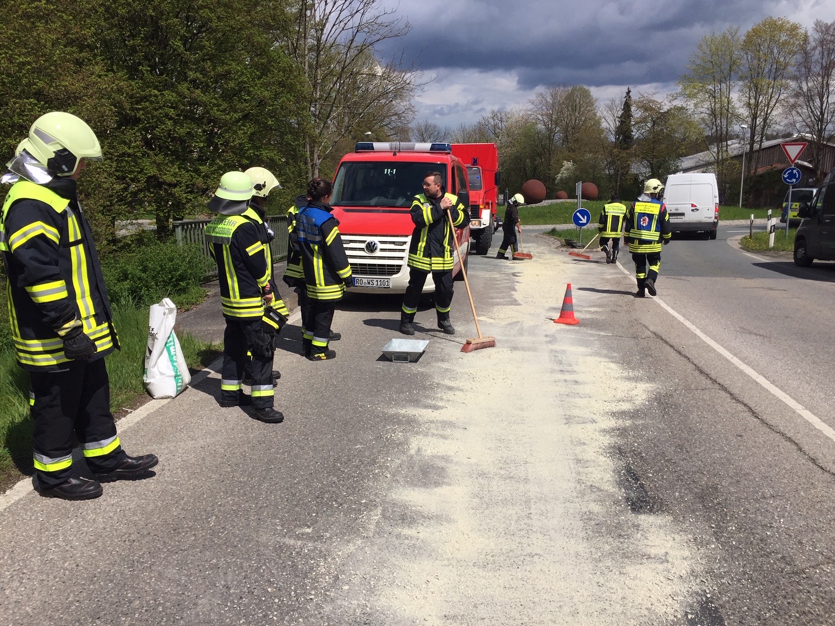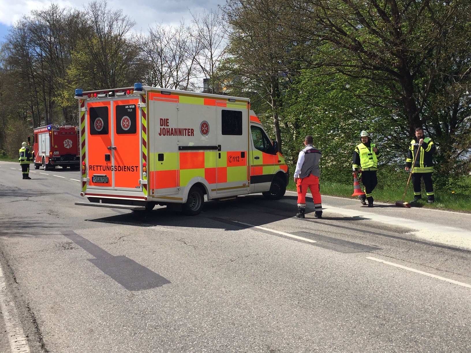 Rettungseinsatz am Dienstagmittag um 13 Uhr. Im Bereich des Kreisels im Bereich zwischen dem Gewerbegebiet Tegernau und Burgerfeld hat sich ein Unfall ereignet. Nach ersten Informationen von vor Ort ist auch ein Motorradfahrer beteiligt. Feuerwehr, Polizei und der Rettungsdienst sind im Einsatz. Während der Unfallaufnahme kommt es zu Behinderungen im laufenden Verkehr. Polizeibericht folgt. Fotos: Georg Barth