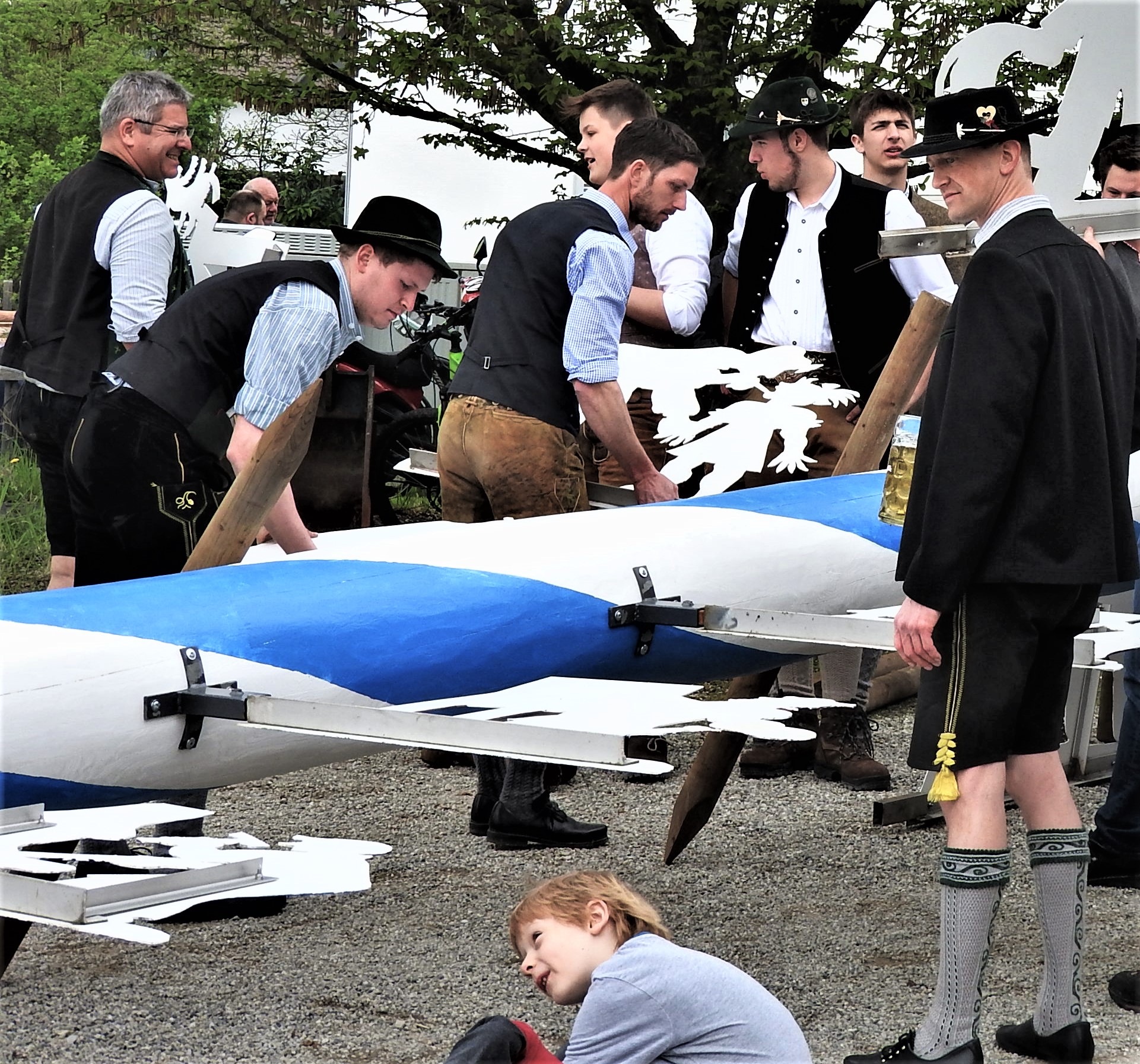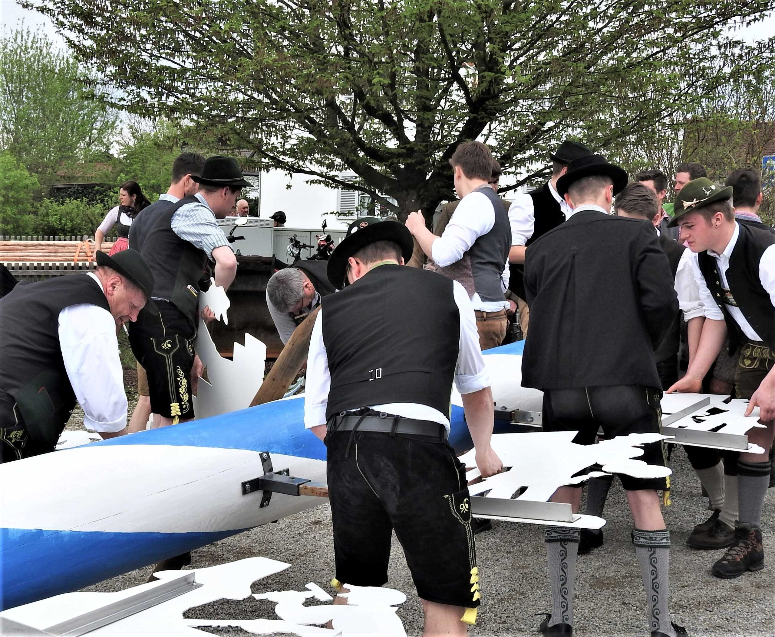 Die schönen, großen Taferl wurden in Griesstätt heute vor dem Aufstellen befestigt am neuen Maibaum …