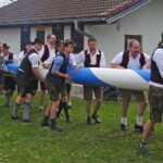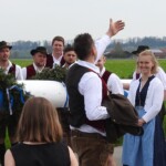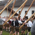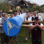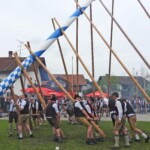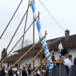 Der 30 Meter lange, weiß-blaue Stamm wurde dann im Rahmen eines Festls wia aus dem Bilderbuach sauba aufg’stellt. Mit Tatkraft und vui Irxenschmoiz: Von den Alteiselfingern und unter der Oberaufsicht vom Harter Vereins-Chef, dem Zeller Wast. Und begleitet vom Salut der Pfaffinger Böller-Schützen.