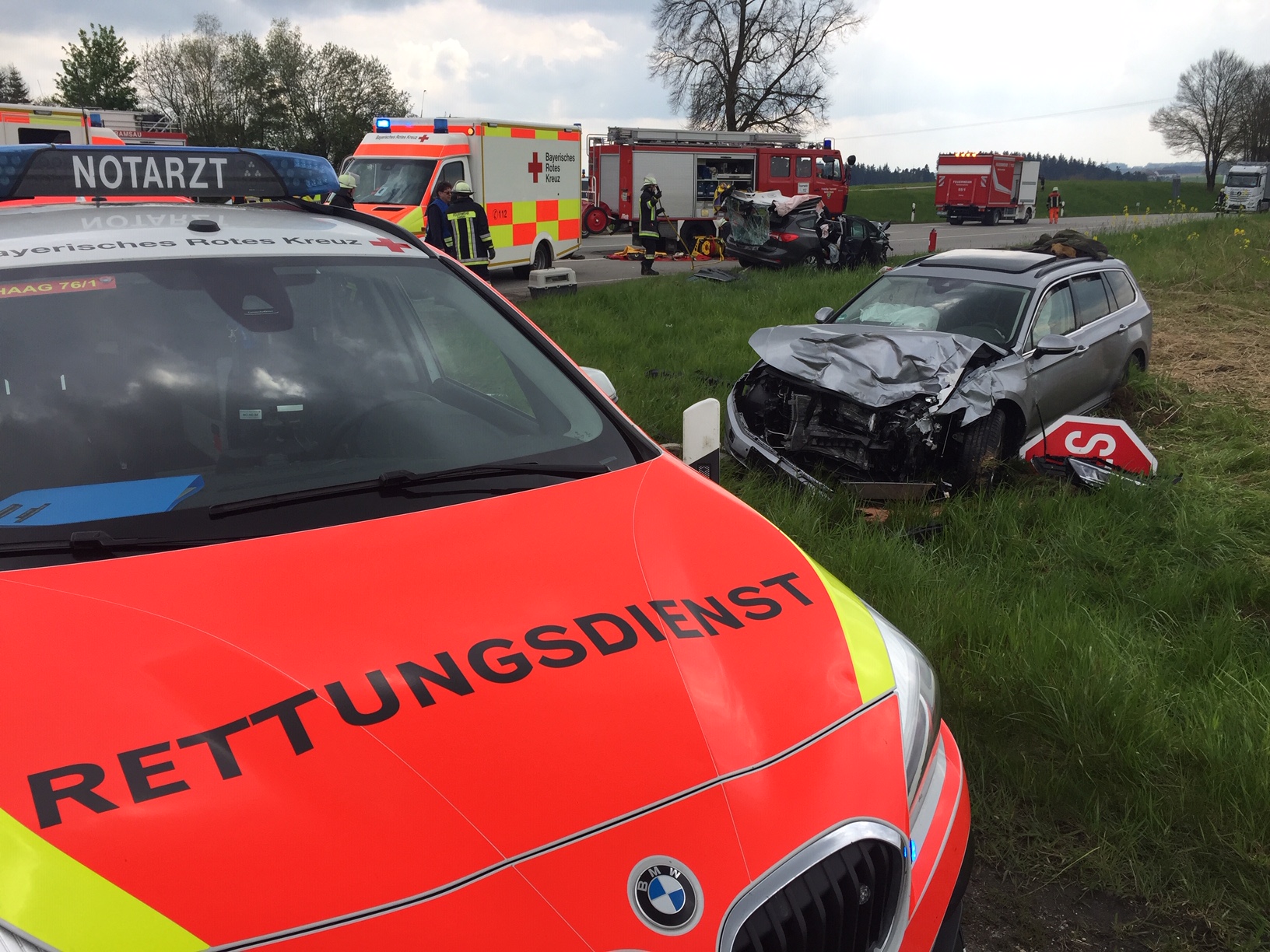 Ersten Meldungen nach sind gegen 13.20 Uhr zwei Pkw zusammengeprallt. Auch ein Rettungshubschrauber ist im Einsatz.