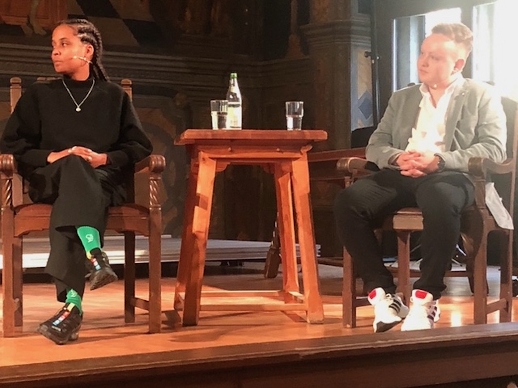 Die Gesprächsrunde, die auch eine breite kulturelle und nationale Vielfalt in sich barg, diskutierte nun über „gemeinsam Heimat“. Es war ein vielversprechendes Thema, das aber leider in vielen Bereichen wieder nur die Oberfläche streifte, ohne sie wirklich zu vertiefen. Was das Publikum irritierte, war wohl zunächst die Tatsache, dass man im Publikum die Moderatorin kaum verstehen konnte. Lag es an der Technik? Jedenfalls verstand man Pia Amofi-Antwi und Kevin Kühnert wesentlich besser.