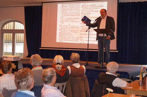 Der Sprachforscher stellt fest, dass die Sprache im gesamten Landkreis Rosenheim, trotz kleiner Unterschiede, tendenziell relativ einheitlich ist. Es gibt allerdings eine Gemeinde, die hier eine Ausnahme darstellt: Samerberg. Das sorgte für ein Schmunzeln auf den Gesichtern der Damen und Herren im Publikum. Überhaupt beteiligten sich die Aktivseniorinnen und -senioren ganz aktiv an der Findung von Wörtern. Daneben fanden sich im Publikum auch einige Interessierte, die als Sammler von Mundart an das Bayerische Wörterbuch Listen senden.