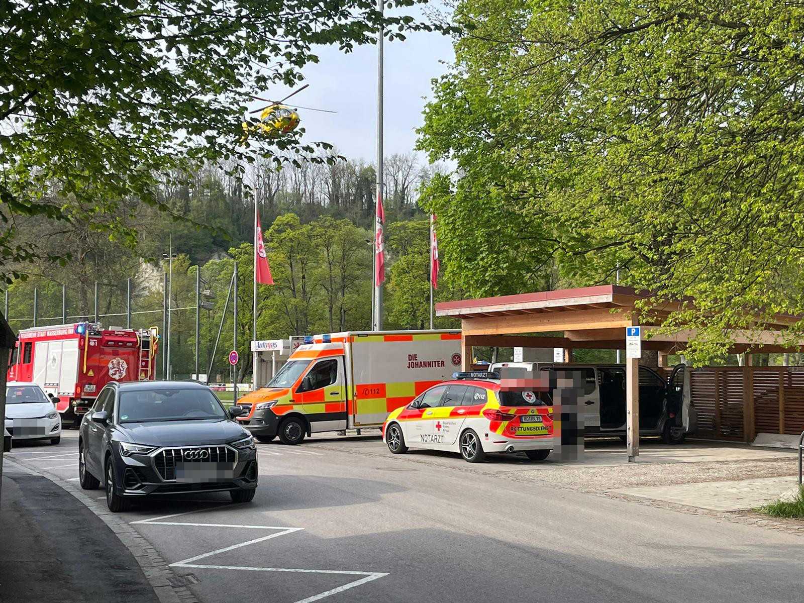 Rettungshubschrauber landet auf Sportplatz an der Landwehrstraße - Wasserburger Feuerwehr sichert Landeplatz