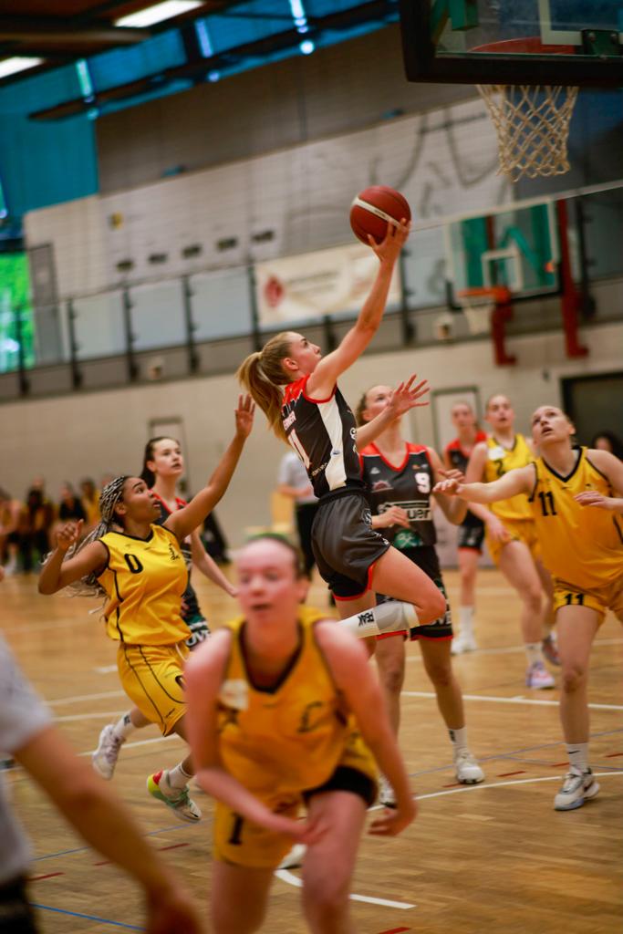 Im ersten Viertel zeigte sich sofort, dass die Luwigsburgerinnen den Sieg nicht einfach so herschenken würden. Im Gegenteil: Beide Teams schenkten sich nichts und kämpften um jeden Ball. Es ging hin und her und es entwickelte sich ein Spiel auf Augenhöhe, welches mit 23:23 in Viertel eins ausgeglichen endete.