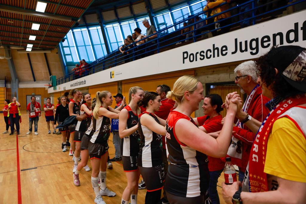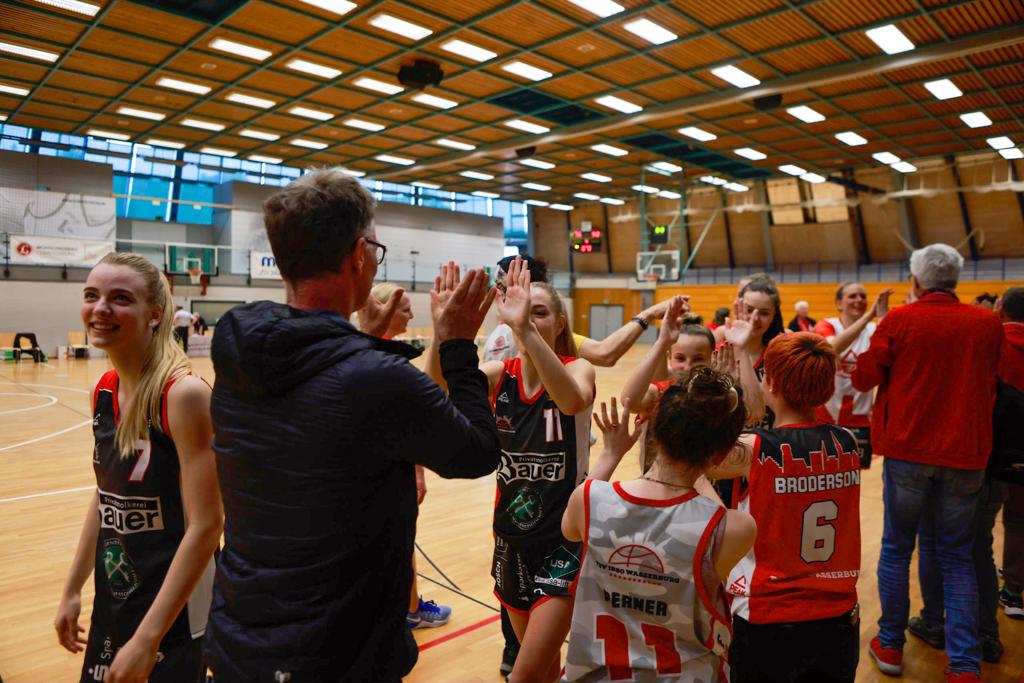 Und unter diesem immensen Druck hat das Team von Bastian Wernthaler und Rita Quinz es trotzdem beim allerletzten Saison-Auftritt noch geschafft: Mit 90:76 holte sich Wasserburg am Ende den Sieg im Showdown. Die TSV-Ladies bleiben somit in der 2. Bundesliga!