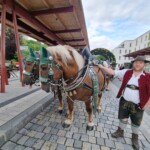 Auf der Wiesn-Alm-Kutsche: Stefan Staudinger (vorne rechts), Manuel Scheyerl (Mitte, rechts) und Tobi Bachmaier (hinten, rechts) mit ihren Familien.
