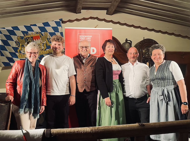 Foto (von links): Elisabeth Jordan, UB-Vorsitzende, Jonah Werner, Bezirkstagskandidat Rosenheim-Ost, Heinz Oesterle, Landtagskandidat Rosenheim-West, Petra Keitz-Dimpflmeier, Bezirkstagskandidatin Rosenheim-West, Thomas Frank, Landtagskandidat Rosenheim-Ost und Alexandra Burgmaier, Kreisvorsitzende Rosenheim-Land