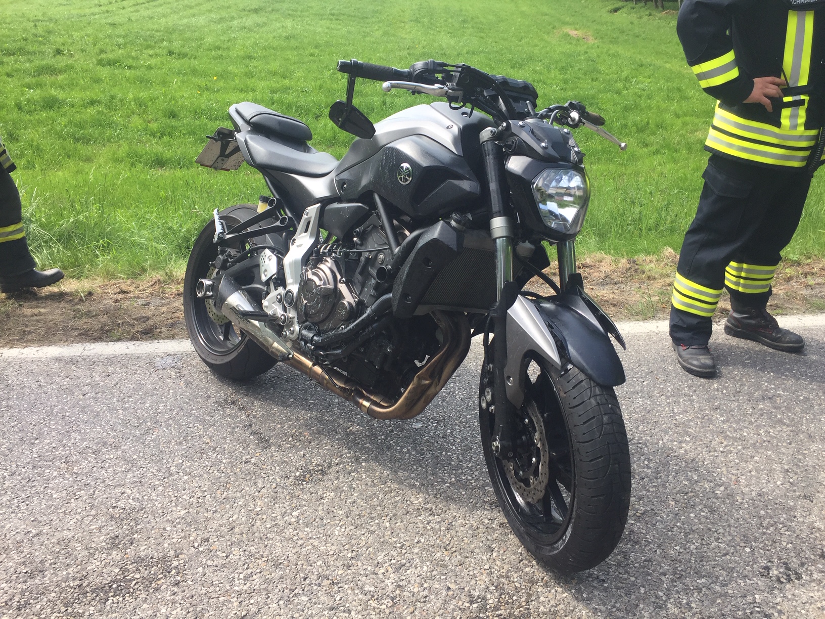 Der Motorradfahrer konnte sein Motorrad nach der Kollision ausbalancieren und kam – wie auch der hinter ihm fahrende ausweichende zweite Motorradfahrer – nicht zum Sturz.