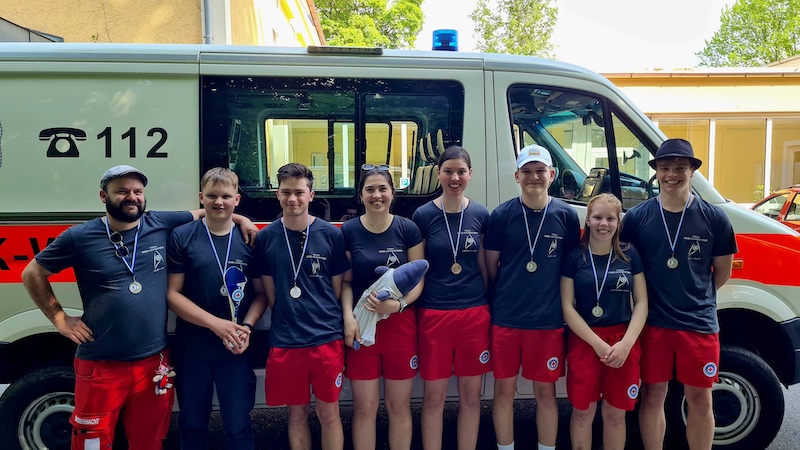 Zwei Monate später fuhren die Aiblinger mit vielen Helfern aus der Ortsgruppe zum Bezirkswettbewerb nach Bad Tölz. In einem zweitägigen Kopf-an-Kopf-Rennen konnten sich die Aiblinger Retter den 2. Platz mit einem hauchdünnen Unterschied zum 1. Platz sichern und repräsentiert Oberbayern nun als „Stufe III B“. Der erste Platz ging nach Penzing (bei Landsberg). Die Retter von dort sollte man bald wiedersehen. Beim dreitägigen Landeswettbewerb in Schwarzenbach am Wald (bei Hof) kam das Team am vergangenen Wochenende an seine Grenzen, doch man gab alles, was Ausbildung und Training hergaben.