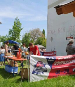 Und wer noch nicht genug Süßigkeiten an diesem Tag bekommen hatte, der konnte sich – nachdem er sein Geschick am Basketballkorb unter Beweis gestellt hat – eine Belohnung in Form von Lutscher und Gummibärchen abholen.