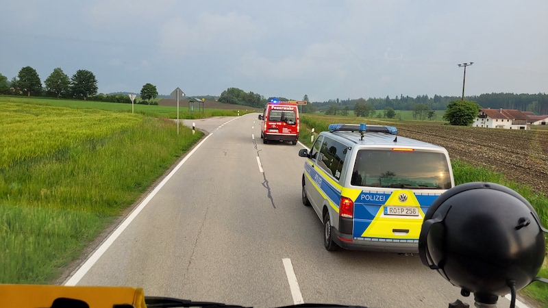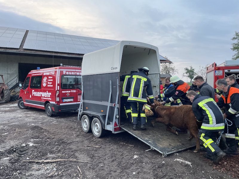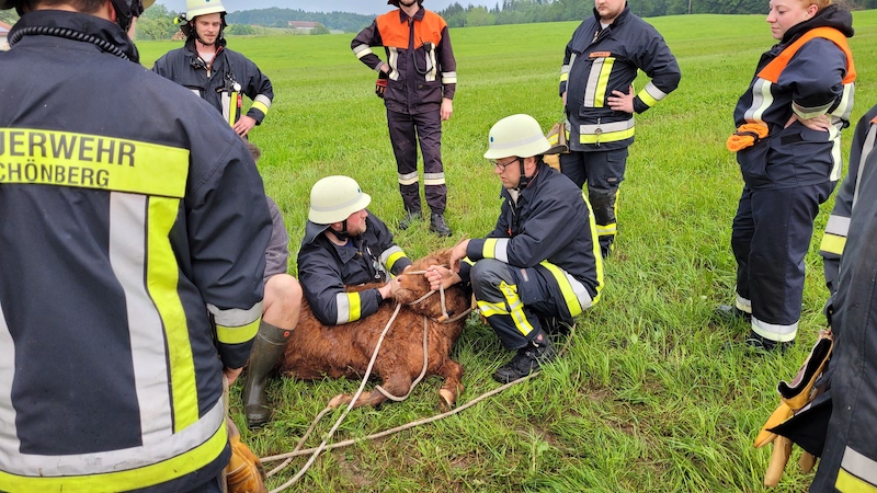 Sein Altersgenosse hingegen wurde nach einer ersten Sichtung an der alten Ziegelei eine Stunde später auf einem Feld bei Mühlberg neu lokalisiert und von zahlreichen Feuerwehrkräften vorsichtig eingekreist, um dann durch den Betäubungspfeil eines anwesenden Tierarztes ruhiggestellt zu werden. Beide Rinder konnte so am Ende zwar gestresst, aber wohlbehalten noch vor Einbruch der Dunkelheit zu ihrem Heimathof zurückgebracht werden. Die Feuerwehren aus Aham, Bachmehring und Schönberg sowie die Polizei waren mit mehreren Dutzend Kräften bis 21.30 Uhr im Einsatz.