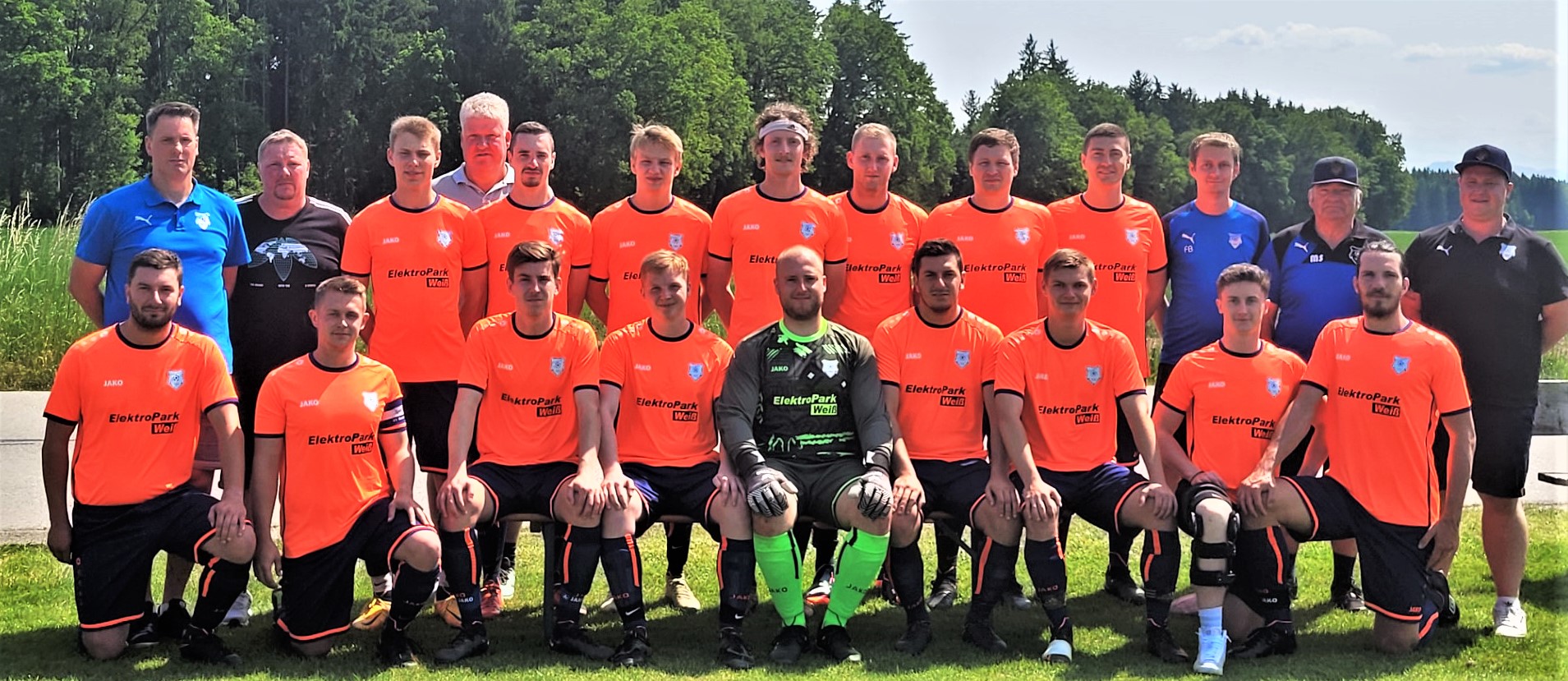 Sein Herz schlägt für den Sport, besonders auch für den Fußball: Klaus Weiß, Firmen-Chef des Elektroparks Weiß in Edling, hat jetzt den Herren-Mannschaften des SV Ramerberg neue Trikots (in der Farbe orange – Bildmitte) geschenkt – anlässlich des 70-jährigen Gründungsjubiläums des SVR.