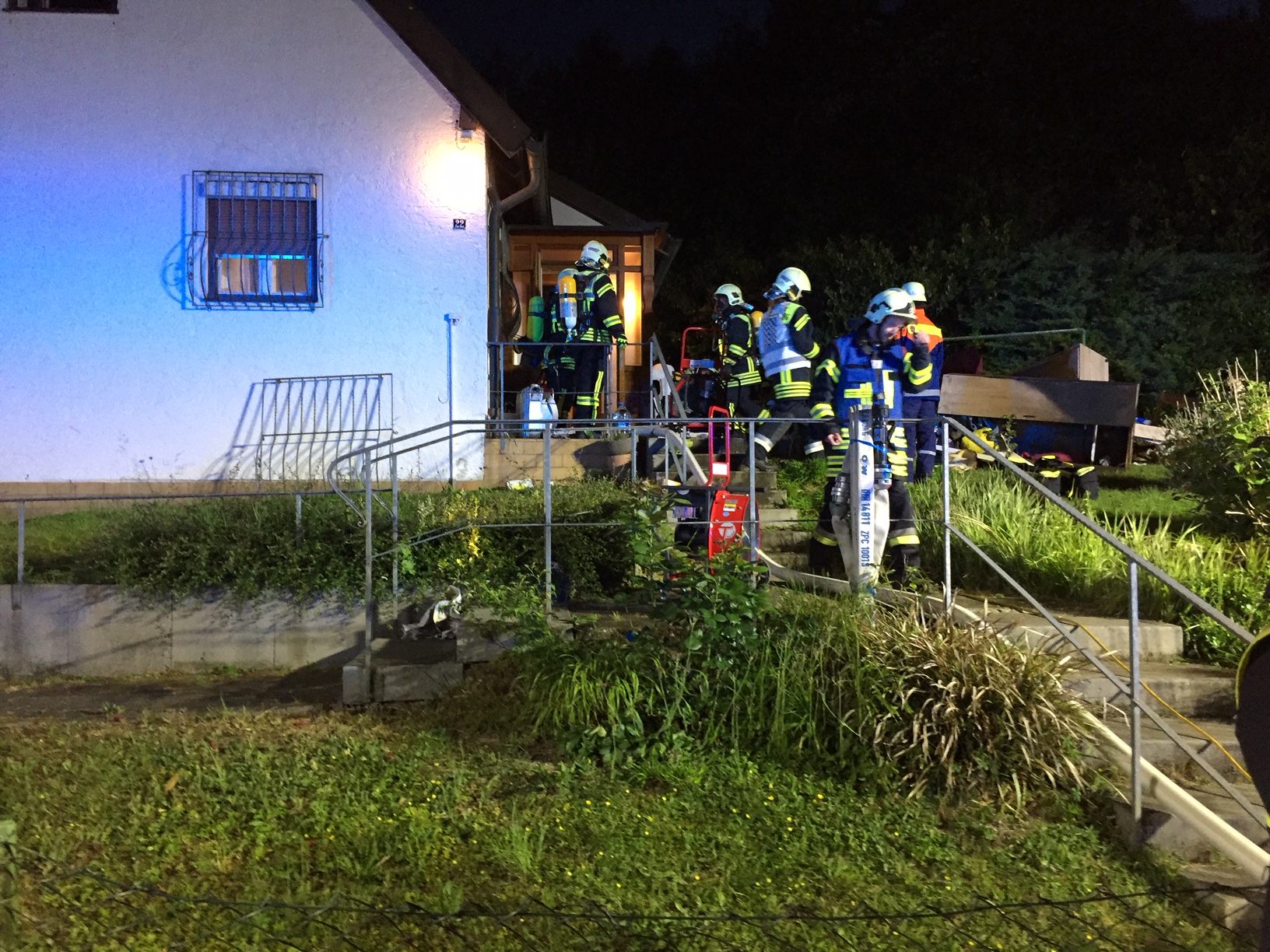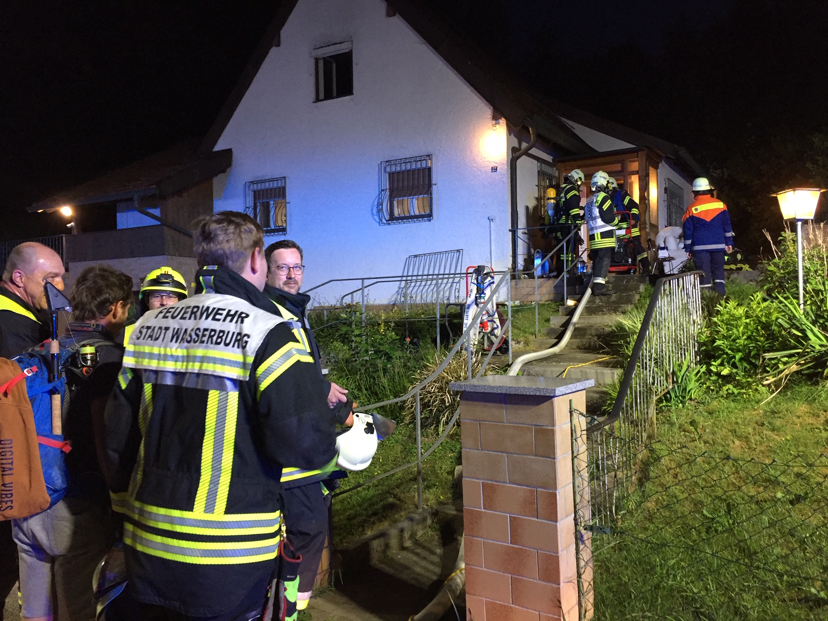 Sonntag, 21.30 Uhr: Alarm für die Feuerwehren Bachmehring und Wasserburg. Am Wuhrweg drang Rauch aus den Fenstern eines Wohngebäudes. Die Lage war aber zum Glück rasch unter Kontrolle. Verletzt wurde niemand. Es entstand auch kein größerer Sachschaden. Auch Rettungsdienst und Polizei waren im Einsatz. Fotos: Georg Barth