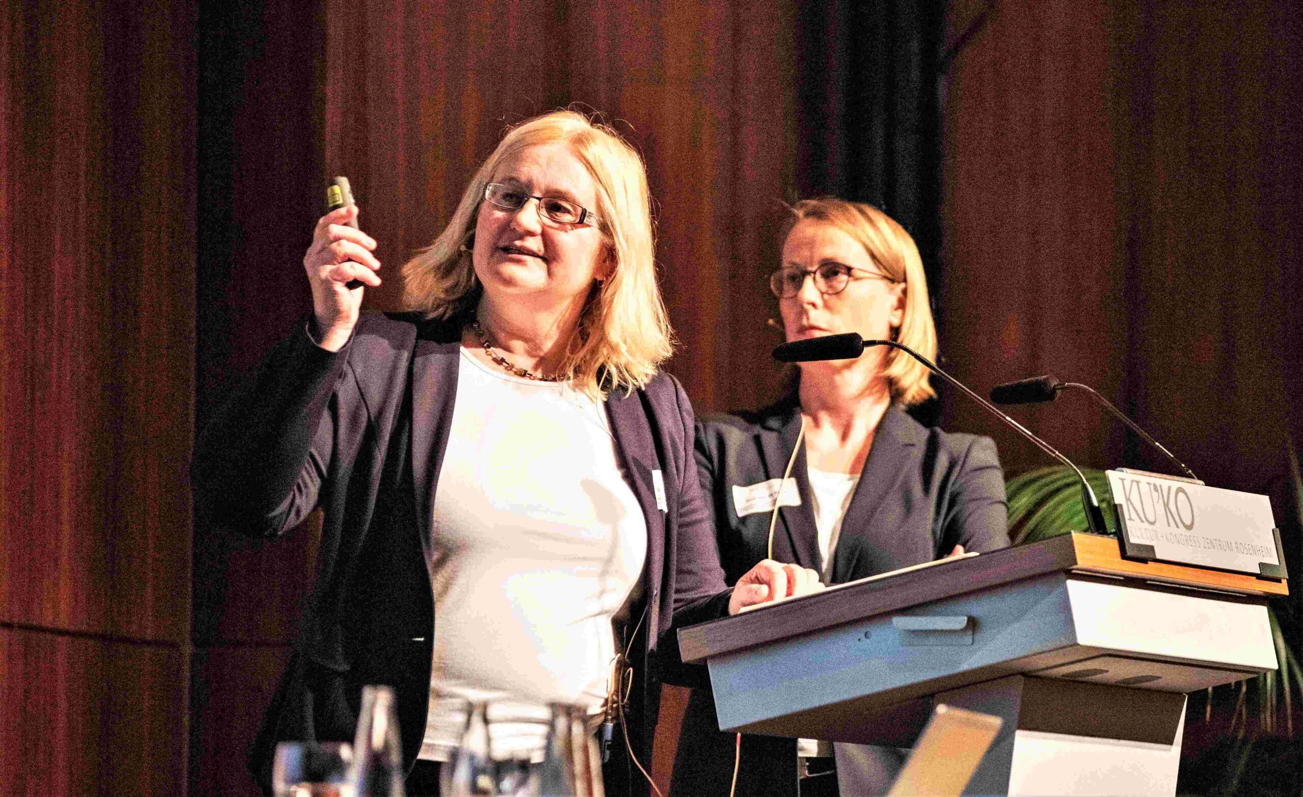 Ministerialrätin Alexandra Brumann vom Bayerischen Staatsministerium für Unterricht und Kultus (links) sowie Regierungsdirektorin Nora van de Sand vom Bayerischen Staatsministerium für Familie, Arbeit und Soziales erläuterten die Hintergründe zu dem Rechtsanspruch auf Ganztagsbetreuung für Kinder im Grundschulalter ab 2026. Da solle dieser nach und nach eingeführt werden.