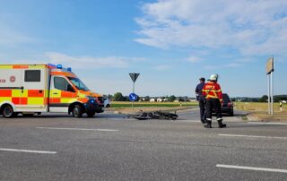 In Freimehring Pkw gegen Motorrad: 51-Jährige aus Düsseldorf stürzt