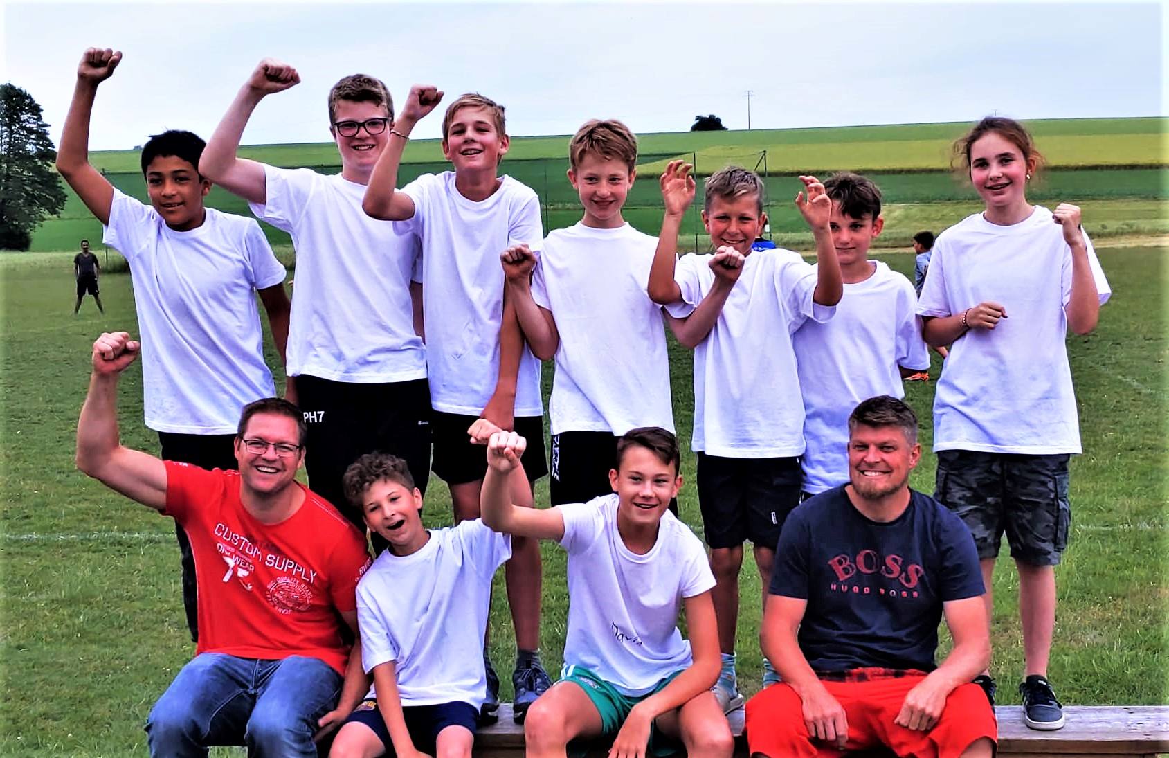 Mädels und Burschen der U13-Fußballer des SV Schonstett mit Meistertitel