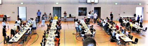 Die Schach-Arena bei einem Turnier – wie hier in der Altöttinger Dreifachturnhalle …