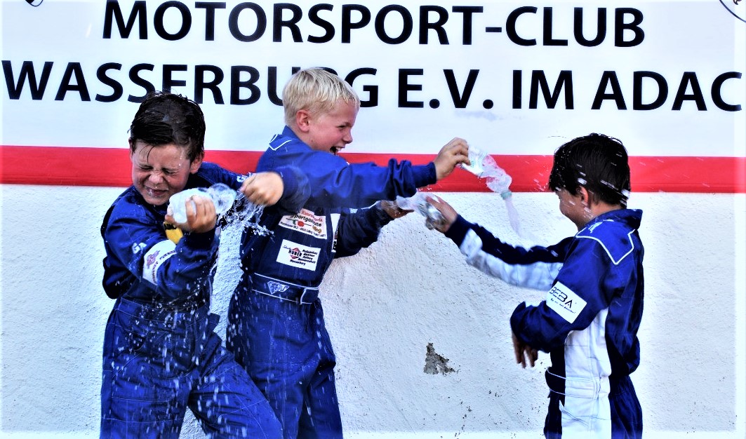 Unser schönstes Foto zum vergangenen, heißen Sommer-Wochenende: Wie die Großen feierten die jungen Motorsportler gestern bei der Siegerehrung in Fürholzen bei Edling – die erfolgreichen (von links) Paul Quer, Matthias Bauer und Ermin Kovacevic hatten ihre Gaudi mit abkühlendem Wasser.