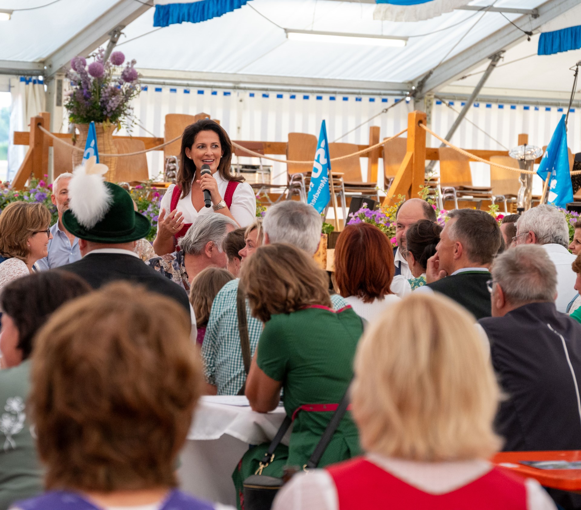 Zum Ausklang des Gaufest-Wochenendes war die bayerische Staatsministerin für Ernährung, Landwirtschaft und Forsten, Michaela Kaniber, Ehrengast und Hauptrednerin beim politischen Abend im Festzelt von Pfaffenhofen in der Gemeinde Schechen.