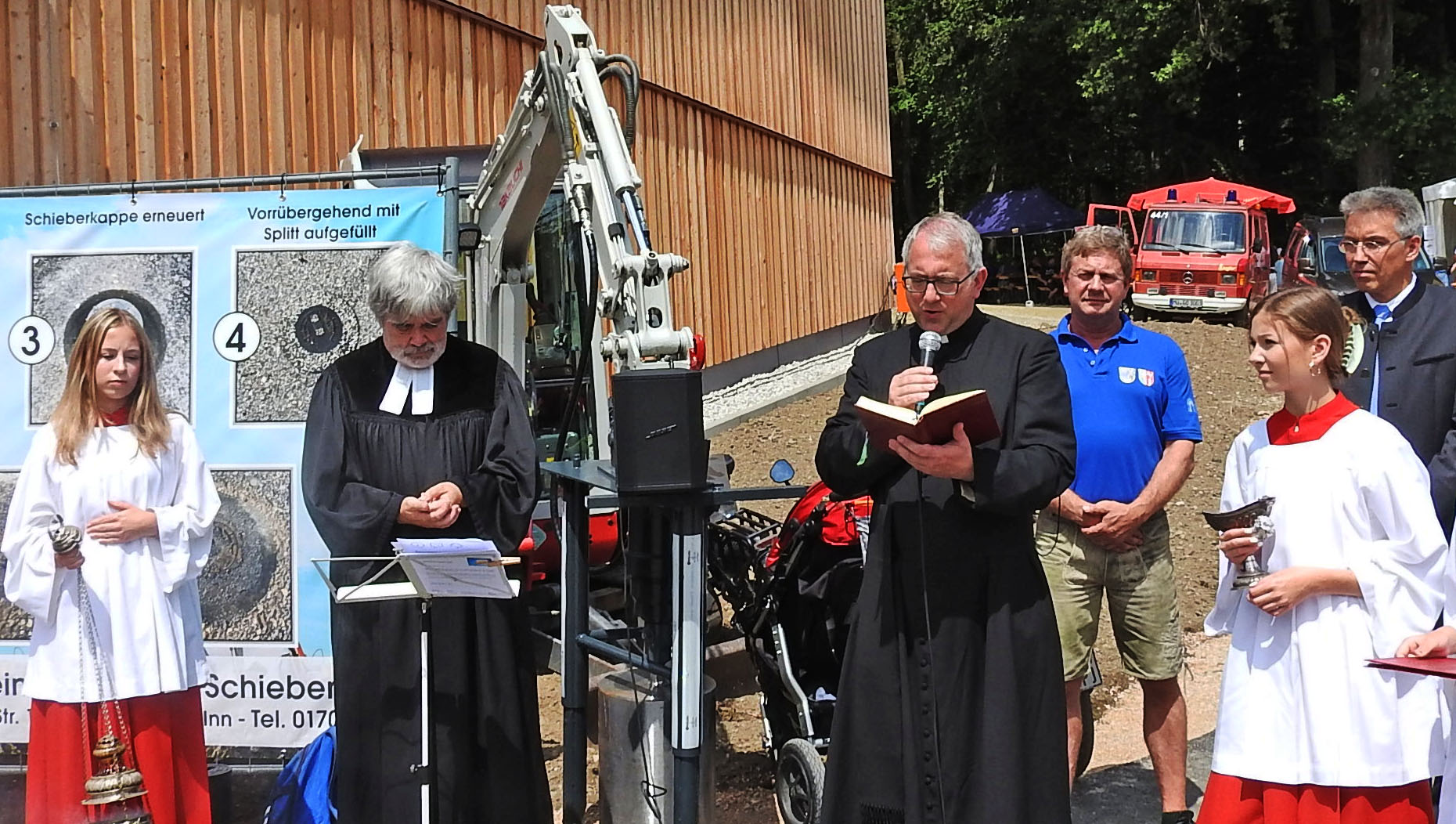 Foto oben: Die beiden Geistlichen, der katholische Pfarrer Josef Huber (rechts) und sein evangelischer Amtskollege Peter Peischl, sprachen den Segen. Wobei Pfarrer Peischl auf die auch bei uns mehr und mehr wachsende Bedeutung des Wassers aufmerksam machte und zum Nachdenken anregte.