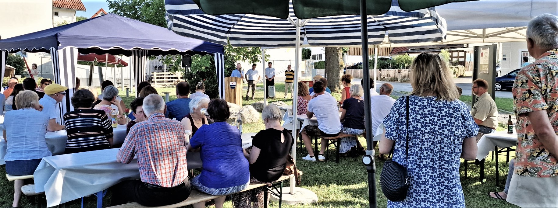 Axel Brück begrüßte die Evenhausener – daneben Bürgermeister Linner, der ebenfalls zum Fest sprach.