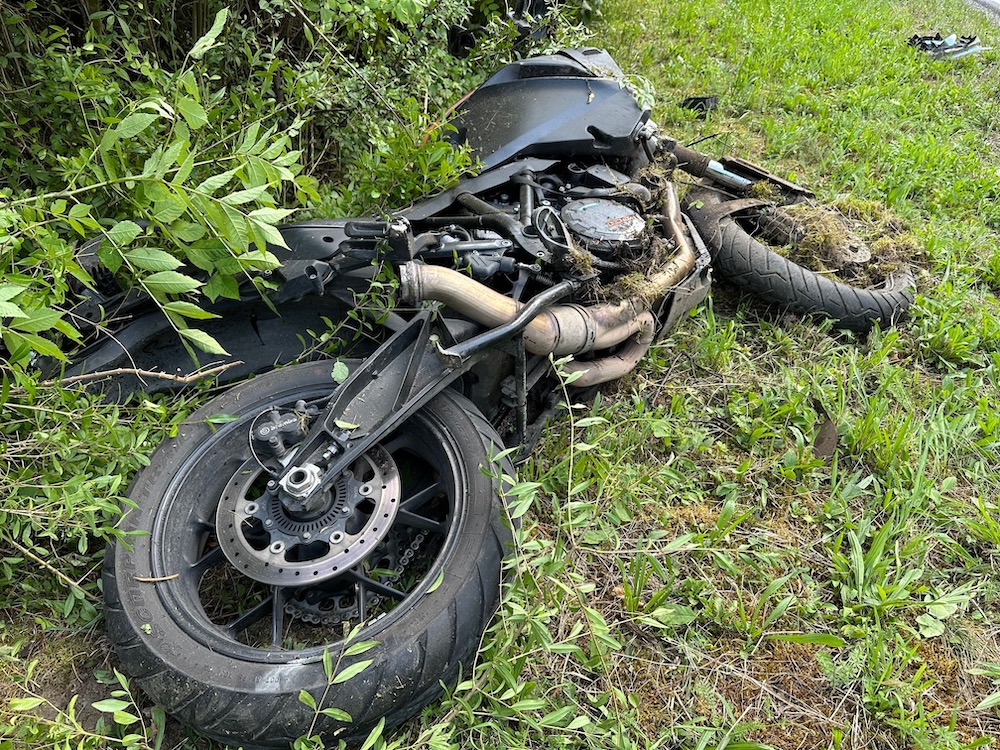 An beiden Fahrzeugen entstand wirtschaftlicher Totalschaden. Am Pkw entstand ein Schaden in Höhe von etwa 25.000 Euro, am Motorrad von 5000 Euro.
