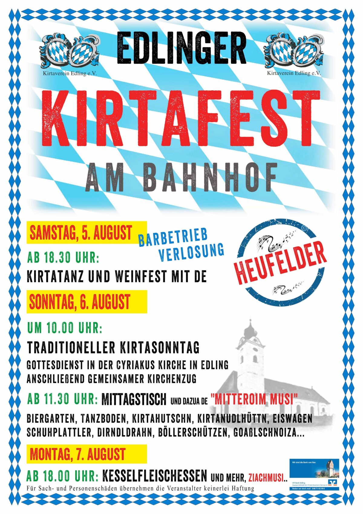 Der Sonntag, 6. August, ist dann traditionell ganz im Zeichen des alten, bayerischen Brauchtums – dem Kirtafest in Edling.