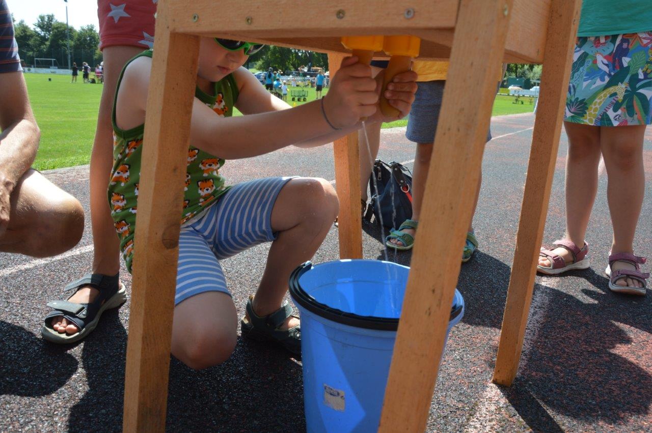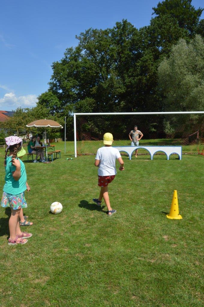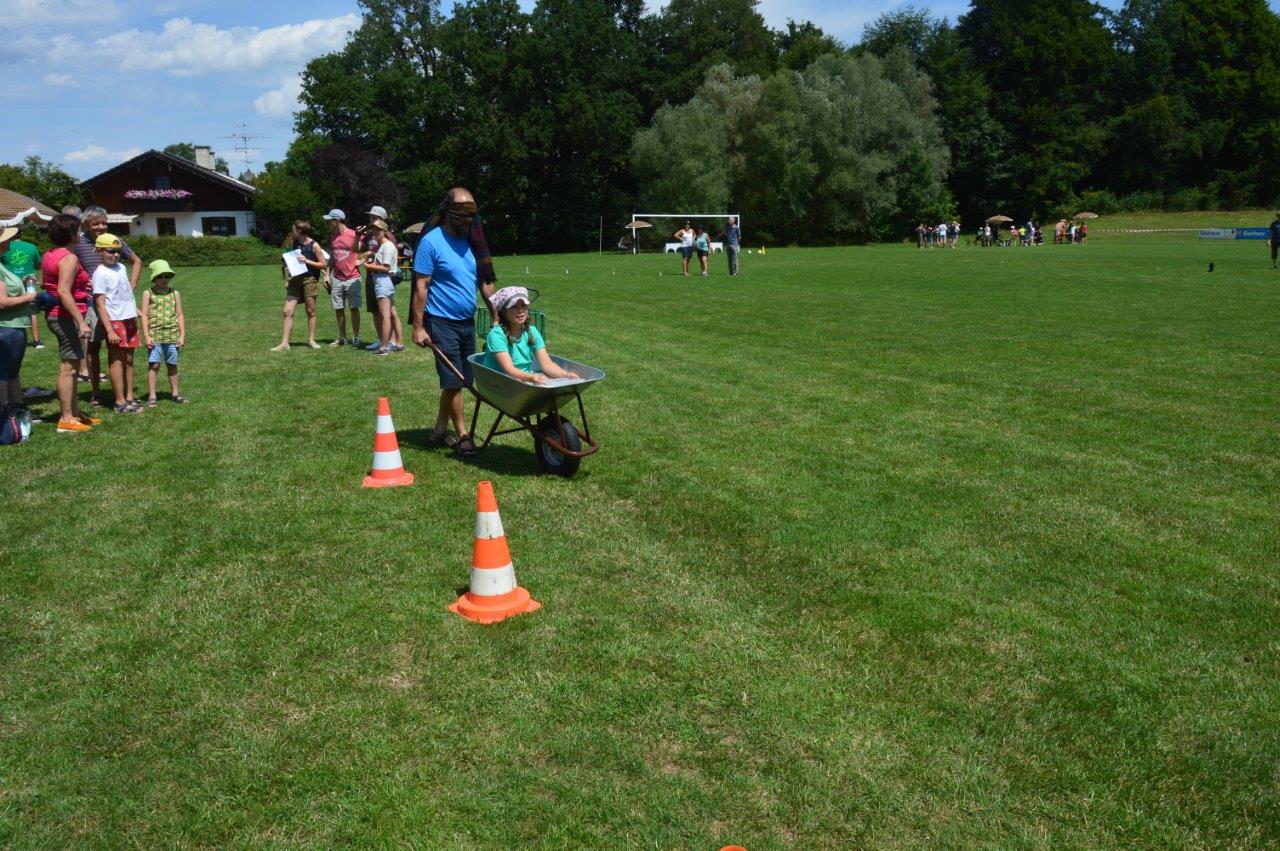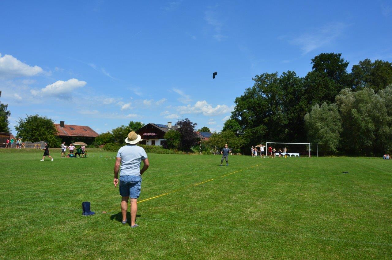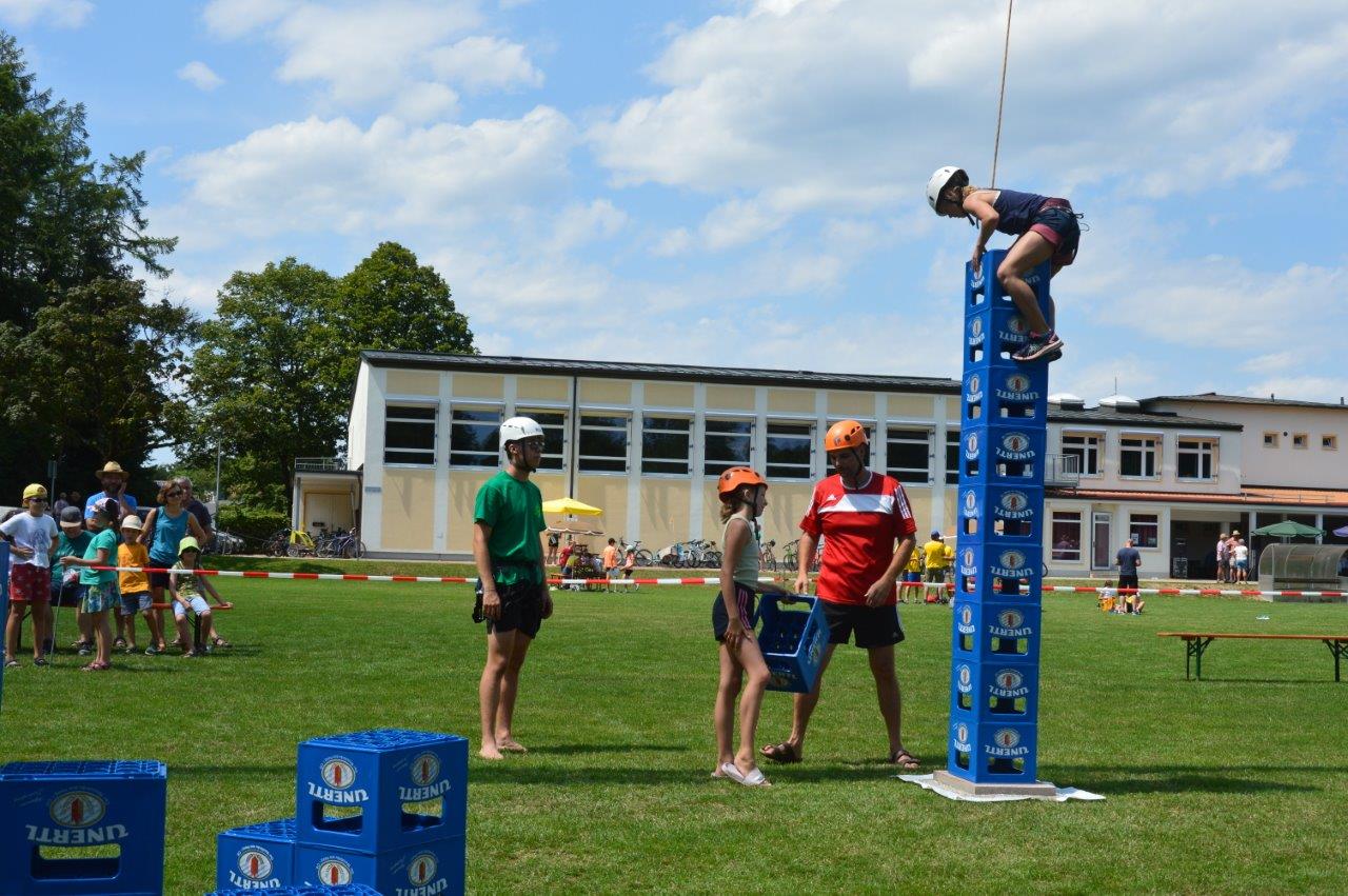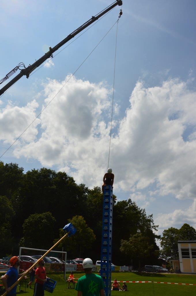 An den Stationen ging es neben sportlichen Aktivitäten wie beispielsweise Torwandschießen oder Gummistiefelweitwurf um Geschicklichkeit beim Schubkarrenparcour, aber auch um logisches Denken, wenn man schätzen musste, wie viele Reiskörner in einem Glas sind. Auch Wettmelken mit Wasser und Kugelschreiber versenken stand auf dem Programm. Highlight bei allen Teilnehmern war aber das Bierkistenstapeln. Das beste Team schaffte 19 Bierkisten übereinander. Bei allem Ehrgeiz standen vor allem der Spaß und die Gaudi im Vordergrund.