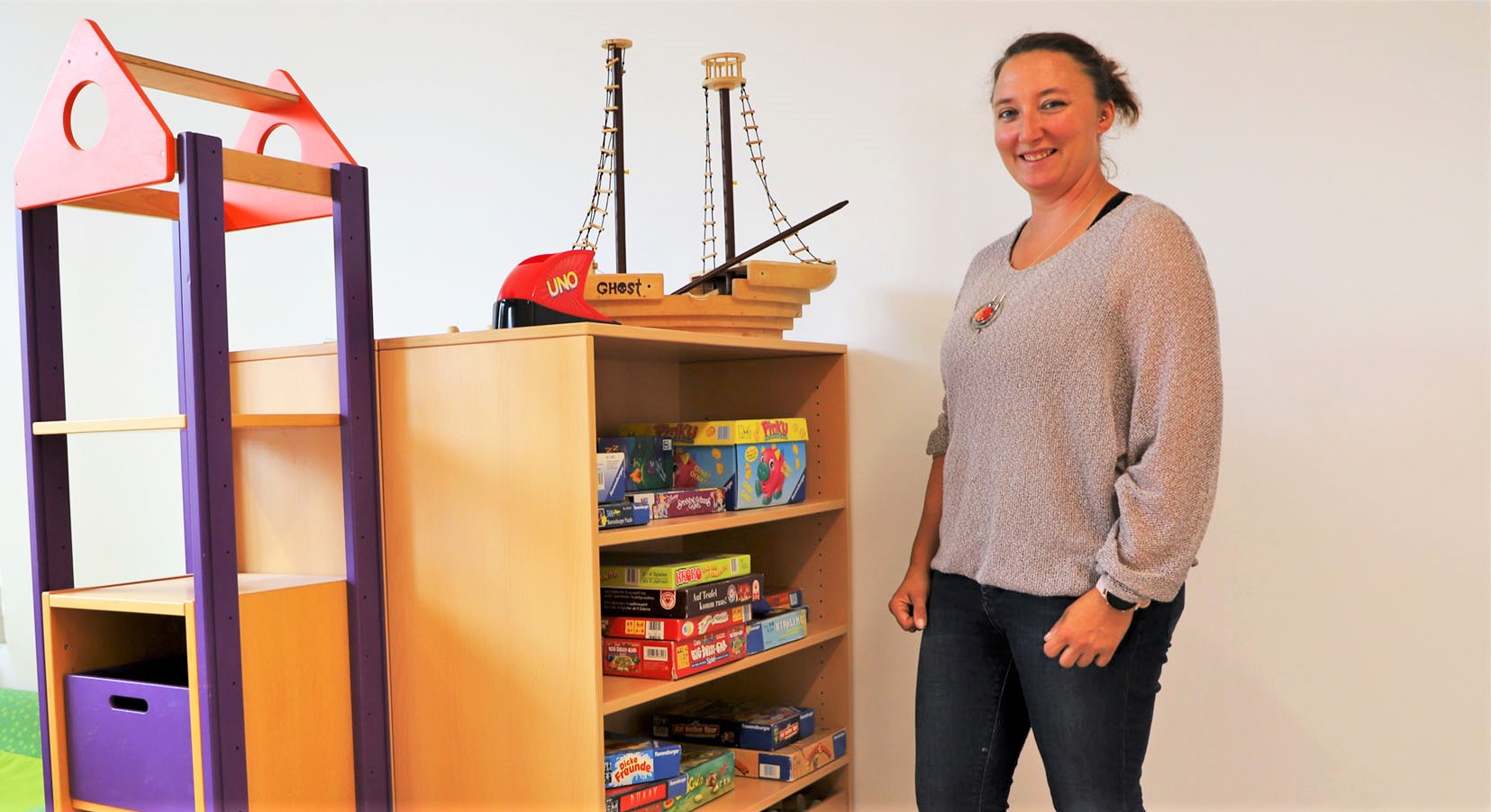 Sarah Kern: „Jede Gruppe verfügt über einen geräumigen Aufenthaltsraum mit Spielangeboten und über ein kleineres Nebenzimmer, in dem sie die Hausaufgaben machen können. Damit haben die Kinder genügend Bewegungsspielraum und finden auch Rückzugsmöglichkeiten, wenn sie Ruhe zum Lernen brauchen oder auch mal für sich sein wollen.“