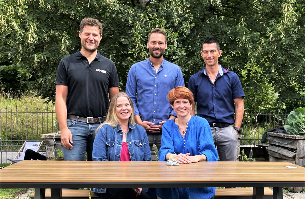 Feierlich eröffnet an der Realschule in Wasserburg im Rahmen eines – ja, tatsächlich – allerersten Sommerfestes: Das „grüne Klassenzimmer“. Das Foto zeigt die Sponsoren sowie die 2. Konrektorin Monika Tonte und die verantwortliche Lehrkraft, Michael Andörfer.
