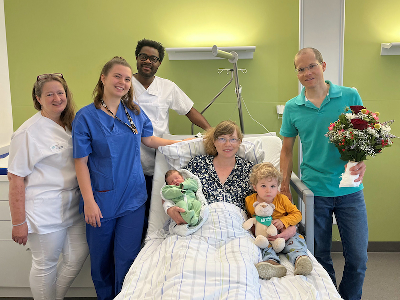 Anja Britta Stopik, kommissarische Leiterin und leitende Oberärztin der Geburtshilfe, Hebamme Helena Strebl und Assistenzarzt Dr. Liditz Hapawa gratulierten der glücklichen Familie mit einem bunten Blumenstrauß und dem kuscheligen RoMed-Teddybärchen. „Wir sind sehr froh über die Geburt von Dominik und dankbar für das Vertrauen, das uns die Eltern entgegengebracht haben. Der jungen Familie wünschen wir von Herzen eine schöne erste gemeinsame Zeit mit ihrem kleinen Sonnenschein und alles Gute für die Zukunft“, so Anja Britta Stopik.