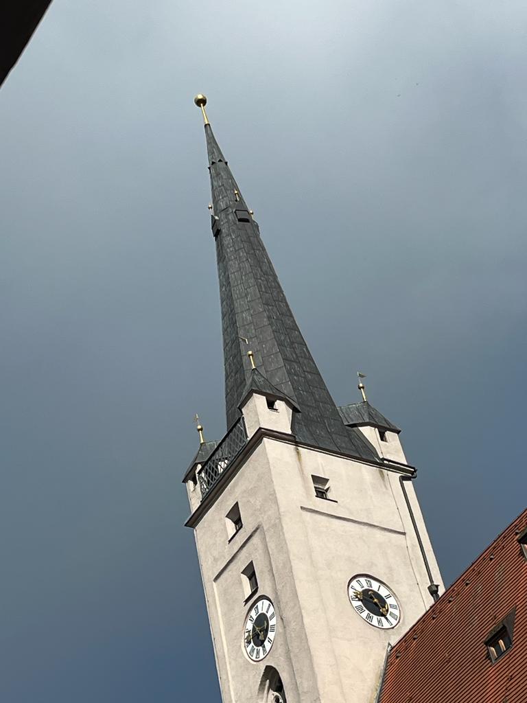 Und eine Sache hams vergessen: Die seit Wochen verhedderte Kirchenfahne am Turm der Jakobskirche.