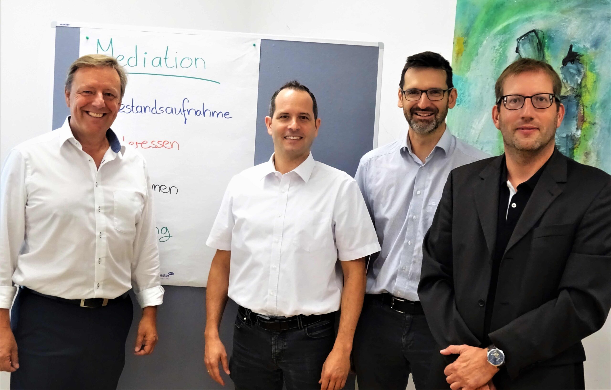 Das Foto zeigt von links die Güterichter RiAG Teubner, RiAG Eitzinger, RiAG Schneider und RiAG Bühl. Urlaubsbedingt fehlt die Güterichterin RiAG Herrmann.
