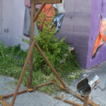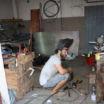 Das Bildhauerische stehe im Mittelpunkt, konnten wir erfahren und eine sehr wichtige Idee sei eben, dass man mit den Materialien arbeite, die man vor Ort finden könne. Und so wird Schrott der benachbarten Firma Zosseder ebenso zur Grundlage von Skulpturen wie der Garten des Geländes, in dem einer der Studenten ein Gang ausgehoben hat, der dann zu einem eher unterirdischen Aussichtspunkt umgestaltet werden soll.