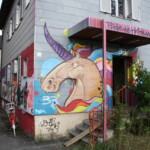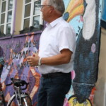 Wenn man das Gelände des ehemaligen Umspannwerks betritt und die Exponate, die in den vergangenen Wochen entstanden sind, betrachtet, sticht einem zuerst „die Zauberbohne“ ins Auge. Georg Weyerer hat hier aus Stahlseilen, Stahlblech, Stahlbändern und Kupferblech eine riesige Bohne an überdimensionalen Wurzeln geschaffen. Das Kunstwerk, das aus dem ersten Stock des Hauptgebäudes herausragt und die sich darunter aufhaltenden Menschen gleichzeitig beschützt und bedroht, soll, so will es der Künstler, auf die globale Ungerechtigkeit in der Verteilung von Gütern aufmerksam machen. Aber diese Zauberbohne, die sich auf das Märchen „Hans und die Bohnenranke“ bezieht, spricht eigentlich auch für sich selbst.
