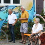 Die benachbarten Johanniter halfen mit Trinkwasser, im benachbarten Badria durften sie sich waschen, duschen usw. und so konnte dieses künstlerische Projekt trotz der großen Hitze in den vergangenen beiden Wochen zu einem Erfolg geführt werden.