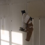 Von ganz anderer Art sind die Exponate von Luisa Heinz, die eine Serie von neun Anzügen geschaffen hat, die hier sowohl als künstlerisches Objekt, als auch als tragbares Kostüm gelten dürfen und so ein Spannungsfeld zwischen Malerei und Kleidung zu schaffen vermögen.