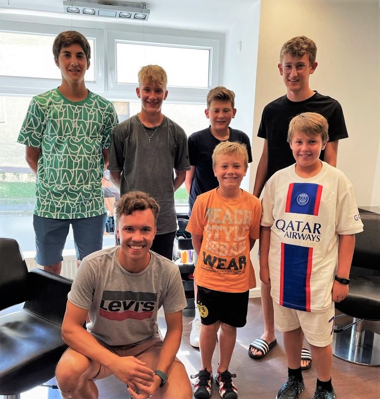 Acht Fußballer und auch Jugendleiter Lukas Kölsch standen quasi ihren Mann. Eine Super-Sache fanden alle. Und auch auf diesem Weg noch einmal ein herzliches Danke an Anita und Tonja mit Team für das starke Styling – und genauso an die jungen Männer fürs Unterstützen …
