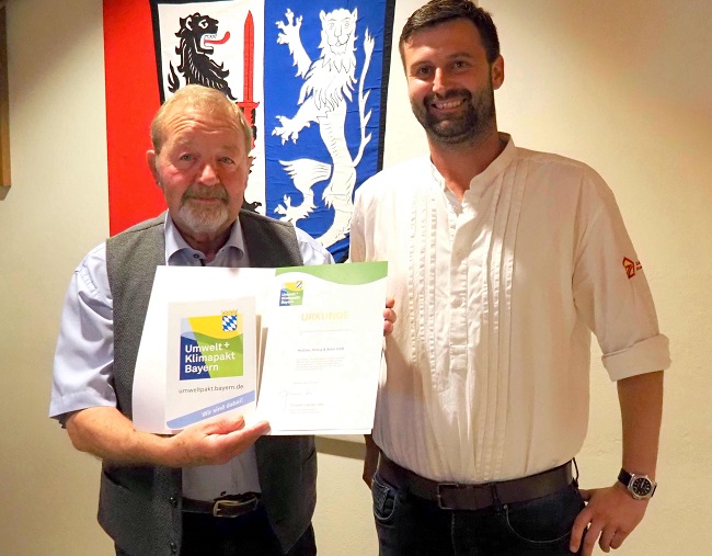 „Umwelt- und Klimapakt Bayern“: Babenshams Bürgermeisters überreicht an Lorenz König Urkunde des Freistaats