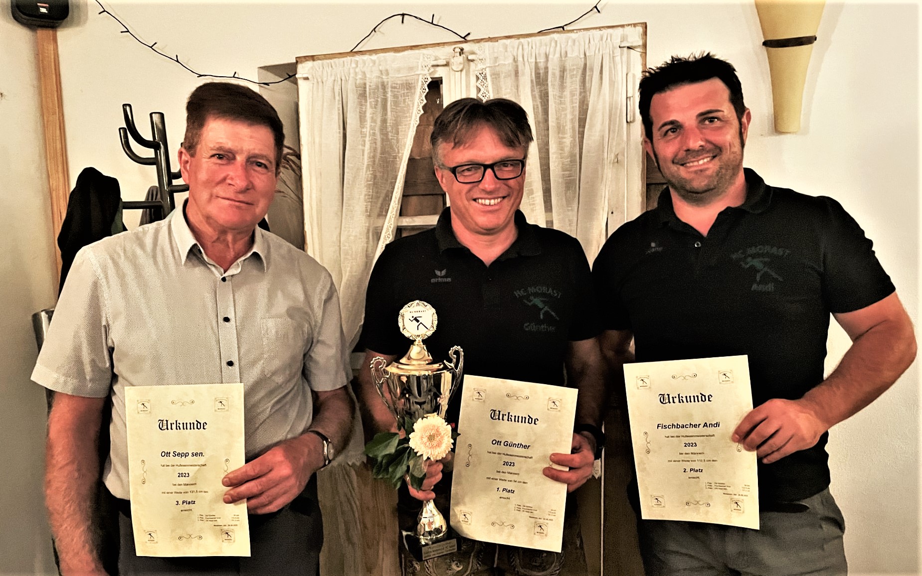 Den zweiten Platz bei den Herren belegte mit 112 Zentimetern Andreas Fischbacher (rechts) und Dritter wurde Josef Ott sen. (links) mit 132 Zentimetern.
