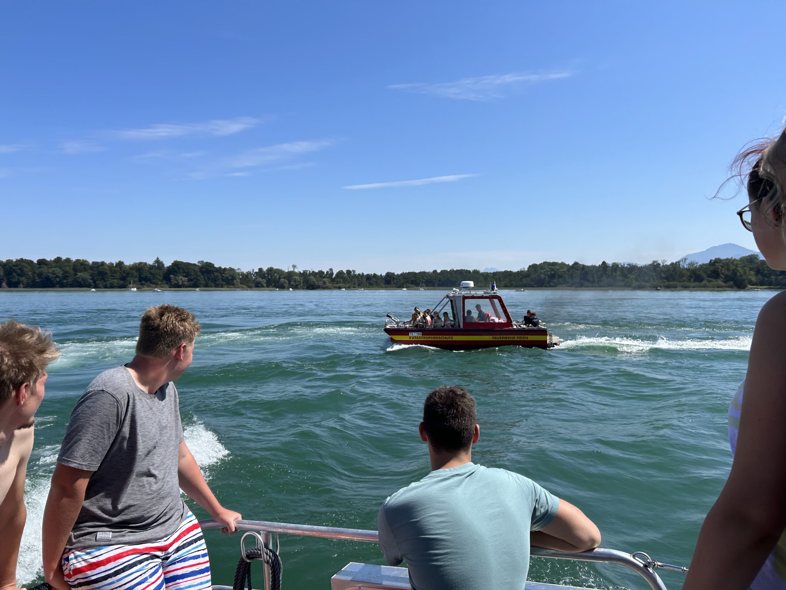 Auf der Rückfahrt nach Prien zeigten die Bootsfahrer nochmal ihr ganzes Können und die Edlinger Jugend (plus Betreuer ) waren ziemlich beeindruckt. Der restliche Nachmittag wurde am Priener Ufer mit baden und wettspringen verbracht.