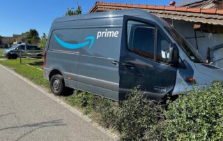 Lieferwagen landet in Vorgarten und beschädigt Haus