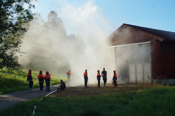 Da die echte Berufsfeuerwehr Dienstsport machen muss, stand für die junge Feuerwehrler auch ein Sportprogramm auf dem Plan. Man tobte sich beim Strahlrohrfußball aus. Nachdem alle nass waren und ma sich am Gerätehaus gerade umziehen wollten, wurden beide Einsatzfahrzeuge zu einem Forstunfall ins Zillhamer Moos gerufen. Nach weiteren drei Einsätzen (BMA-Alarm, Katze auf Baum und Vollbrand einer Lagerhalle) gab es Abendessen. Bevor man mit dem geplanten Filmabend beginnen konnte, rückten die Teilnehmer noch zu einem THL-Einsatz „Baum auf Straße“ aus.