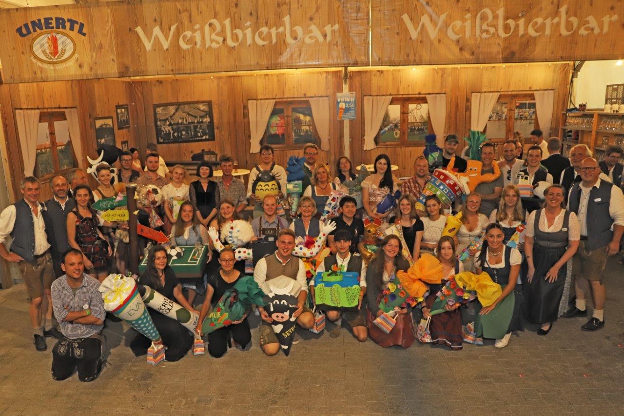 Zum Gruppenbild mit Schultüten versammelten sich nach der Ehrung im Festzelt die neuen Auszubilden, die Vorstände der Stiftung Attl und die Festwirte.