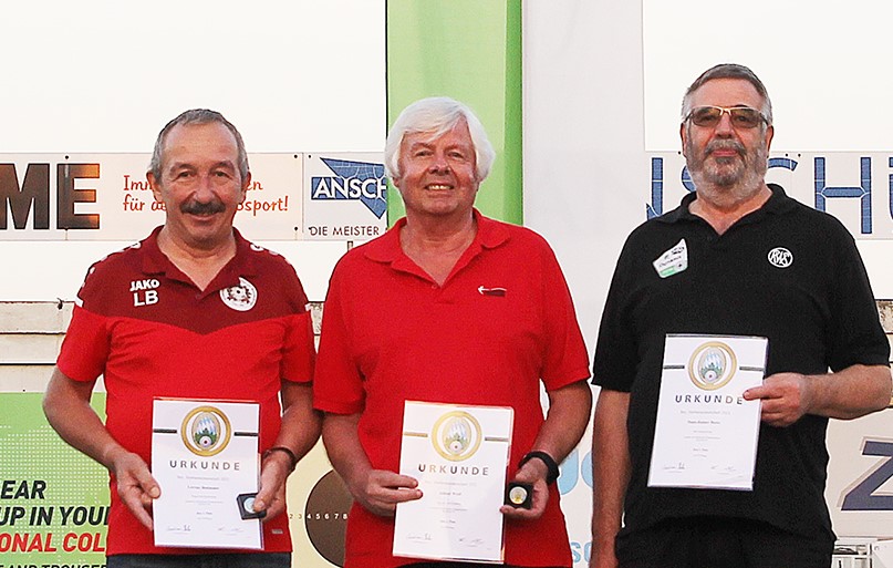 Ein Stockerlplatz bei den Bayerischen: Lorenz Bodmaier (links im Bild) von den Reitmehringer Wagnerwirt-Schützen holte Silber hinter dem Erstplatzierten Alfred Weiß aus Straubing (Bildmitte) und dem Drittplatzierten Hans-Rainer Beetz aus Fürth.