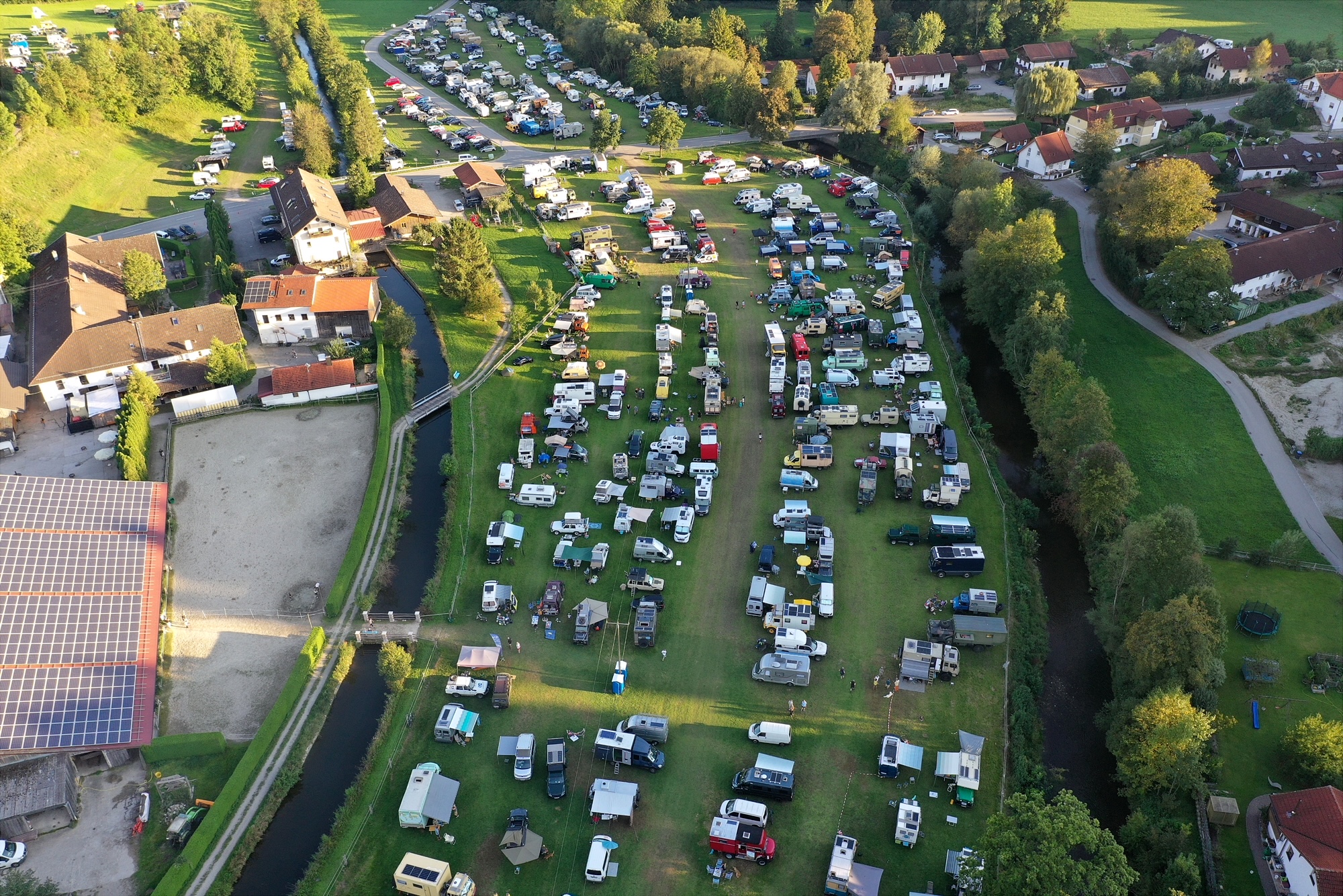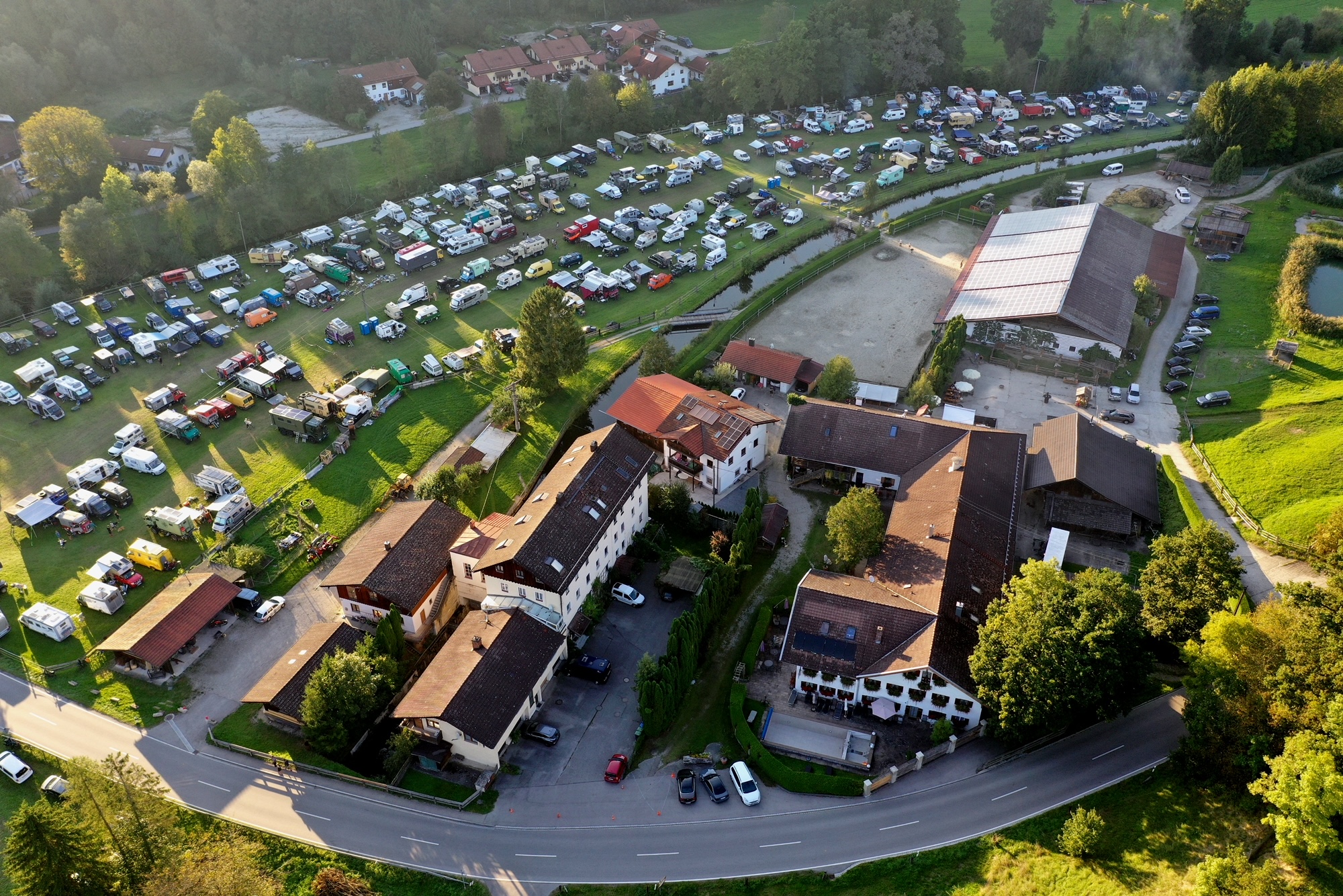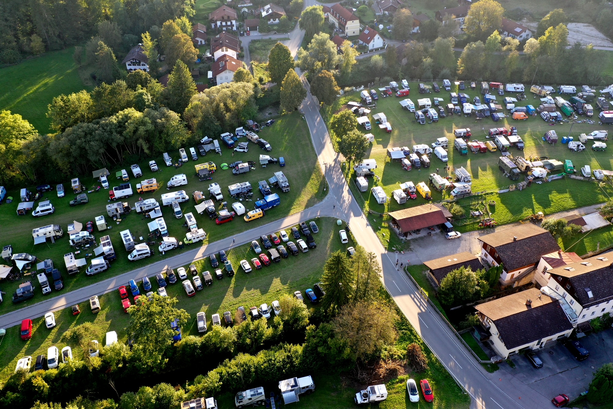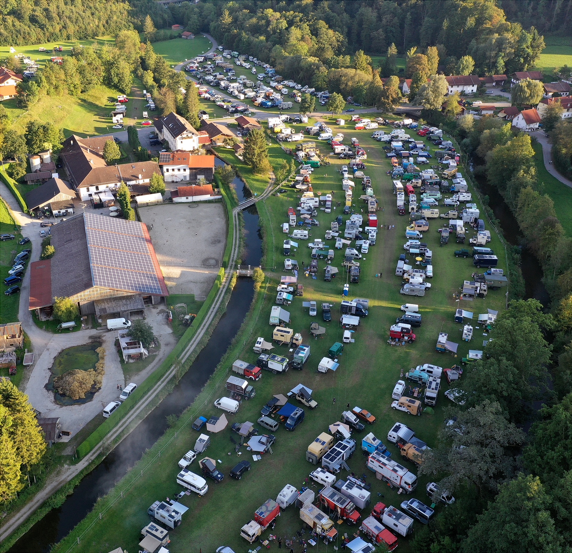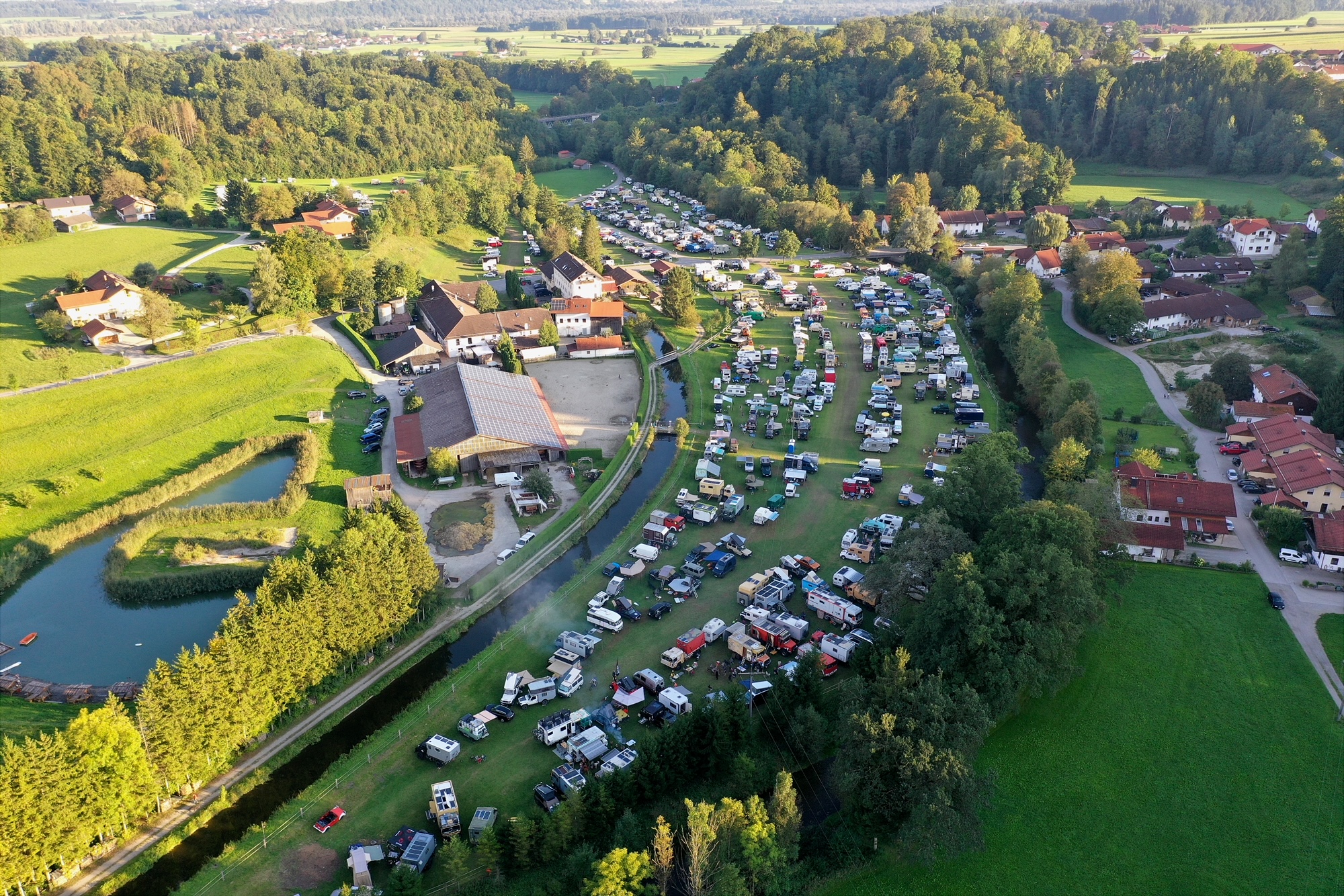 Großes Globetrotter-Treffen im Mühltal bei Zellerreit: Dort fanden sich am Wochenende über 500 Weltreisende mit ihren zum Teil spektakulären Fahrzeugen ein. Auf dem Programm standen neben einem gemütlichen Beisammensein auch zahlreiche Vorträge. Gestern löste sich das Treffen dann tagsüber langsam auf. Luftbilder Georg Barth / Fotos. Stefan Pfuhl